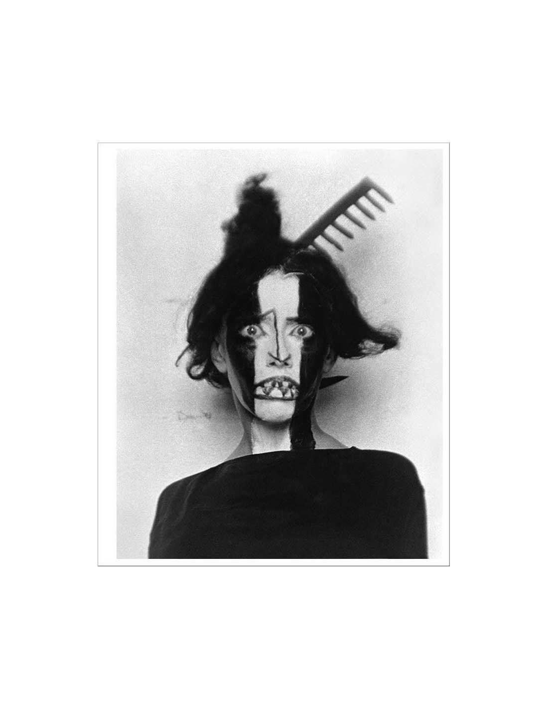 portrait sœur de Nijinsky, visage maquillé noir et blanc et peigne, danseuse du ballet de Larianov